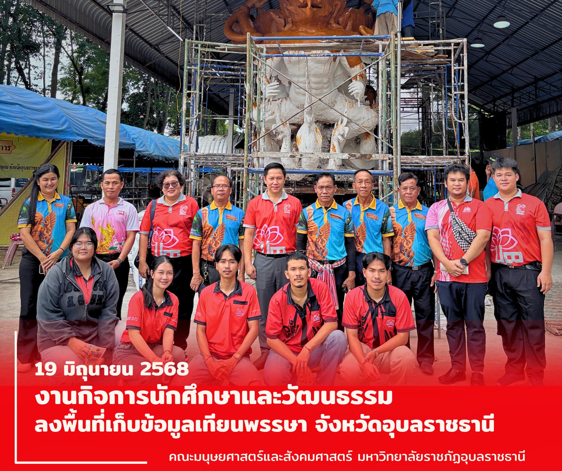 ผู้ช่วยศาสตราจารย์ ดร. ดิฐพงษ์ อุเทศธำรง รองคณบดีฝ่ายกิจการนักศึกษาและวัฒนธรรม คณะมนุษยศาสตร์และสังคมศาสตร์ นำคณาจารย์ บุคลากร และนักศึกษา ลงพื้นที่เก็บข้อมูลเทียนพรรษา จังหวัดอุบลราชธานี ซึ่งเป็นส่วนหนึ่งของกิจกรรมส่งเสริมการจัดการความรู้และบูรณาการ ด้านมรดกวัฒนธรรมภูมิปัญญาท้องถิ่น วันพฤหัสบดีที่ 19 มิถุนายน 2568 ณ วัดเมืองเดช อำเภอเดชอุดม วัดผาสุการาม อำเภอวารินชำราบ และวัดไชยมงคล อำเภอเมือง จังหวัดอุบลราชธานี