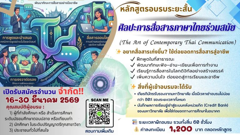 เปิดรับสมัครอบรม | ระบบคลังหน่วยกิต รายวิชา : ศิลปะการสื่อสารภาษาไทยร่วมสมัย
