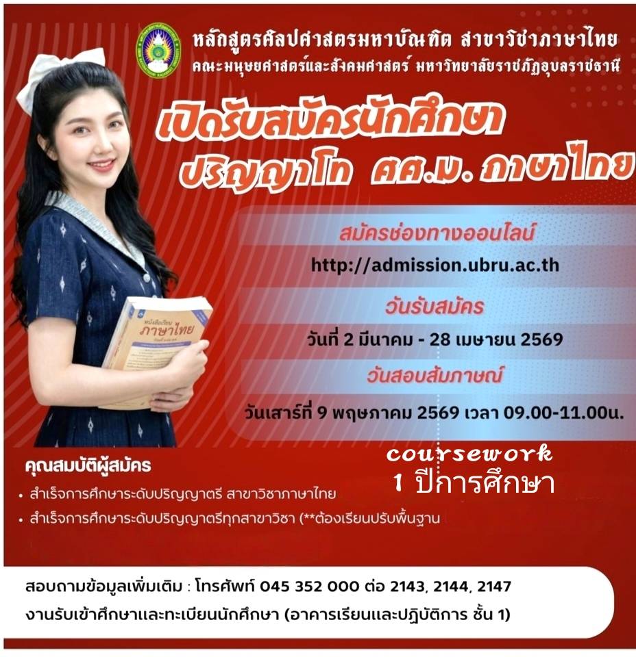 สาขาวิชาภาษาไทย เปิดรับสมัคร ปริญญาโท ศศ.ม.ภาษาไทย