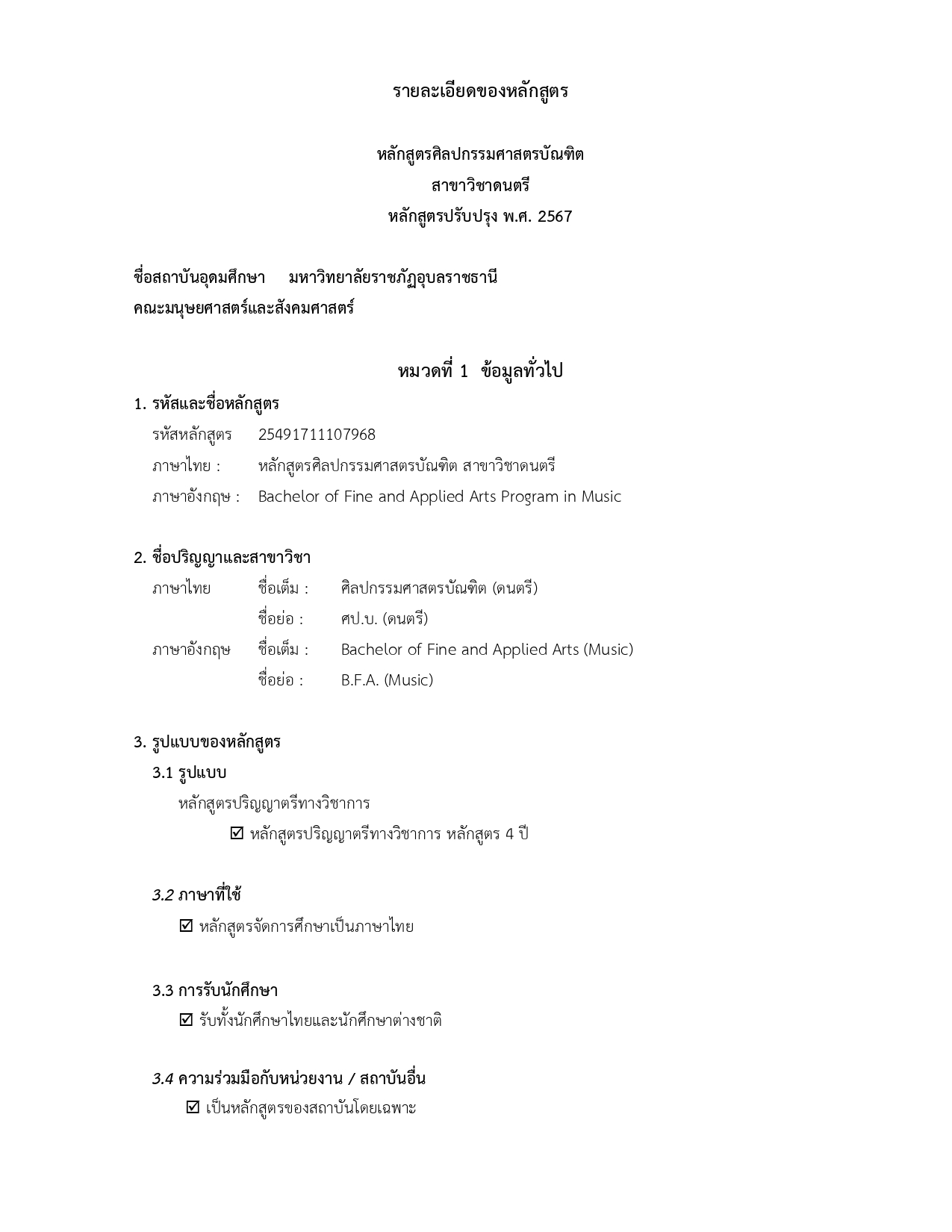 • สาขาวิชาดนตรี (ศป.บ.) และสาขาวิชาดนตรีศึกษา (ค.บ.)